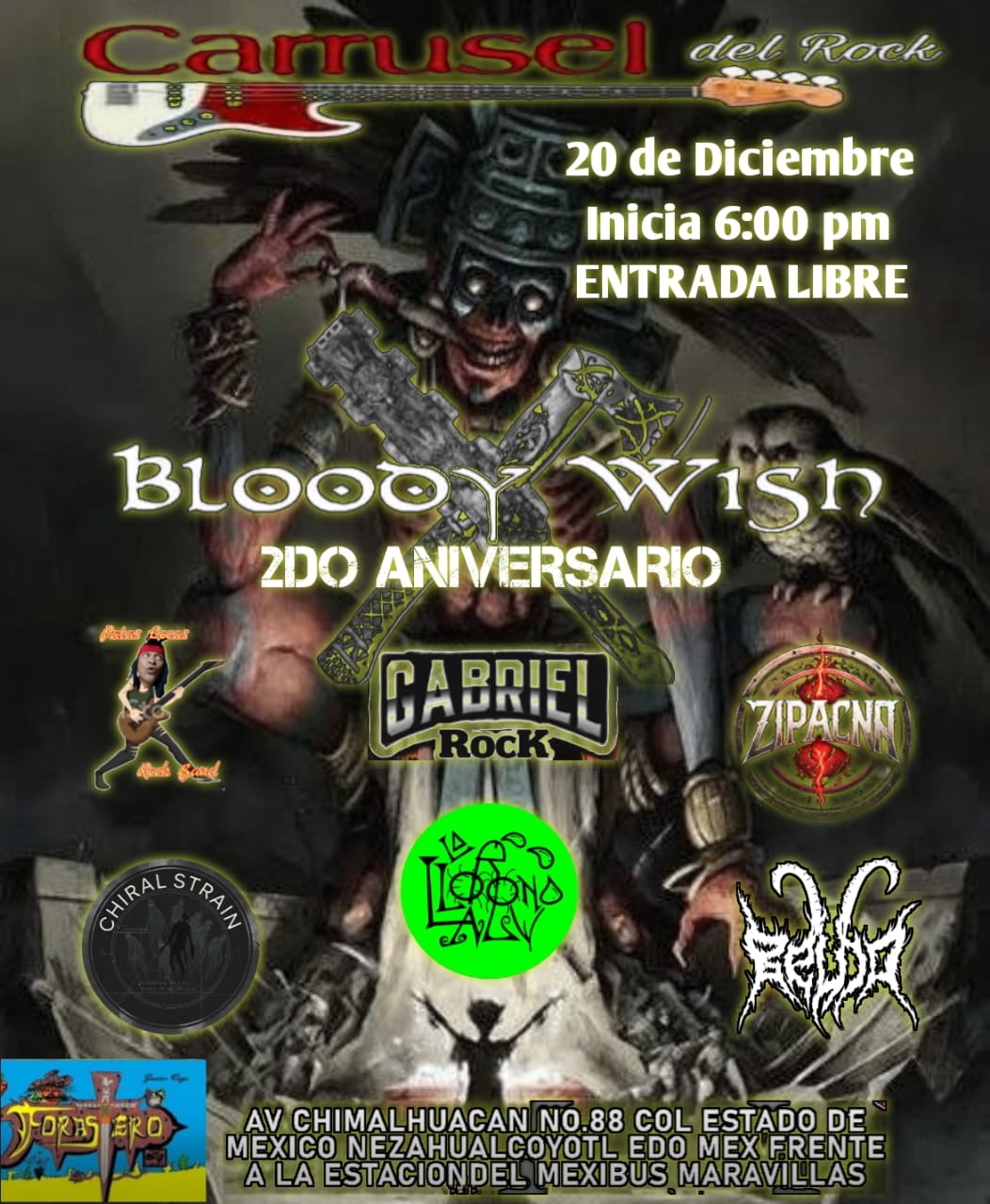 | La Llorona ALV, se forma en la Ciudad de México en junio de 2020, A iniciativa del Sr. Macario Brujo en el ambiente standdupero apocalíptico de la pandemia del Covid-II-19, con la firme intención de formar una banda de rock 100% ñero, que combinara la experiencia de vida acumulada por sus integrantes y su gusto por el Rock y Metal de los años 80. Su güasa, cotorreo y basilón en antros, hoyos funkis, teibol’s dance, reventones, tocadas, conciertos y festivales metaleros, son la materia prima de las liricas de la banda. Su música esta cargada de pura cábula, humor negro, crisis existencial y mucha reflexión sobre la sexta extinción generada por los humanos en los inicios del siglo XXI. |